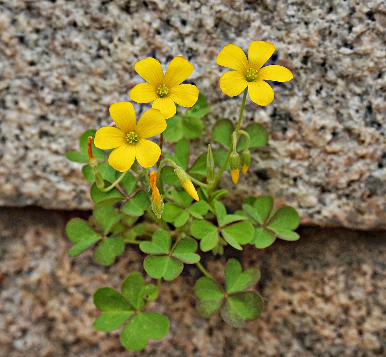 "빛나는 마음"이라는 꽃말을 가진 괭이밥은 낮에는 활짝 폈다가 햇빛이 없거나 밤이 되면 오므라드는 특성을 지닌 앙증맞은 야생화입니다