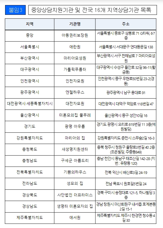 아동유기 방지와 위기임산부 병원 밖 출산을 방지하고 여성과 아동의 생명보호와 건강을 위해 9월 17일 부터 시행합니다