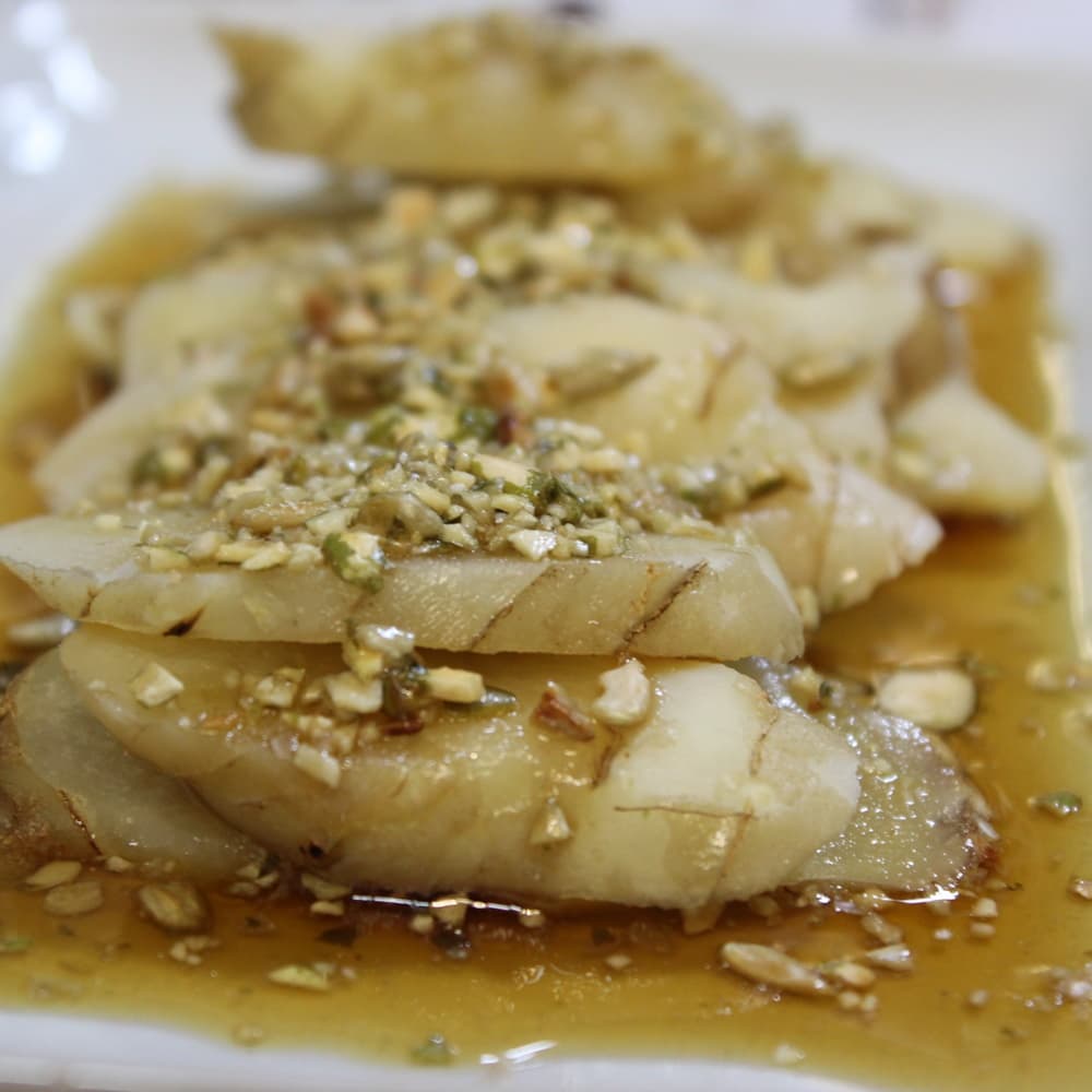 ⑦ 살짝 찐 둥굴레를 접시에 담은 후 취향에 따라 소스를 얹어서 먹습니다